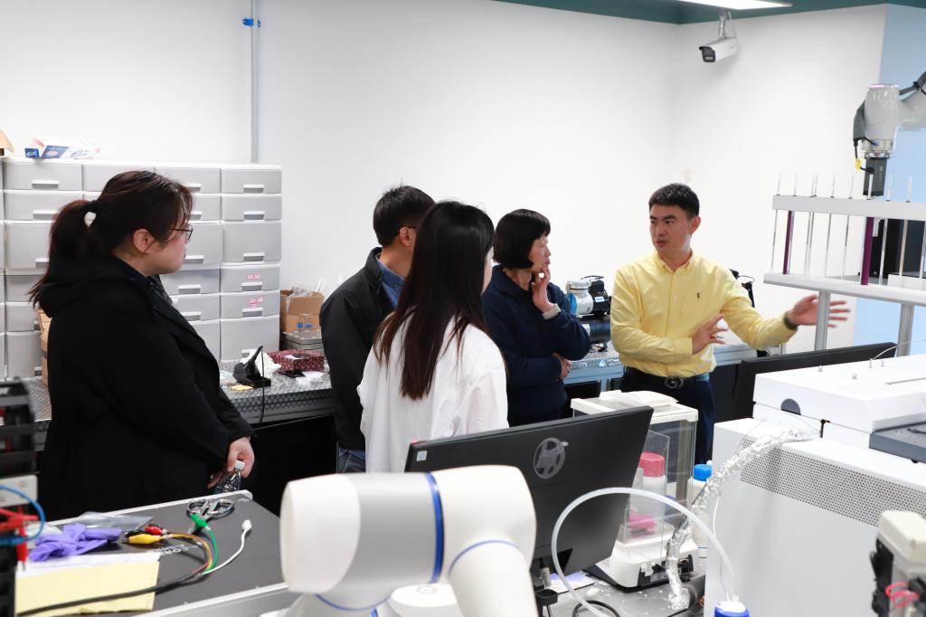 位于南山智园D3栋的科研实验室。来访嘉宾对实验室近一年的跨越式发展给予高度肯定。他们回忆道,两年前实验室刚完成入驻,尚处于场地规划与设施布置的筹备阶段,而如今已实现先进设备的规模化配置与常态化应用,科研硬件从 “筹备起步” 到 “成熟落地” 的飞速升级令人印象深刻。