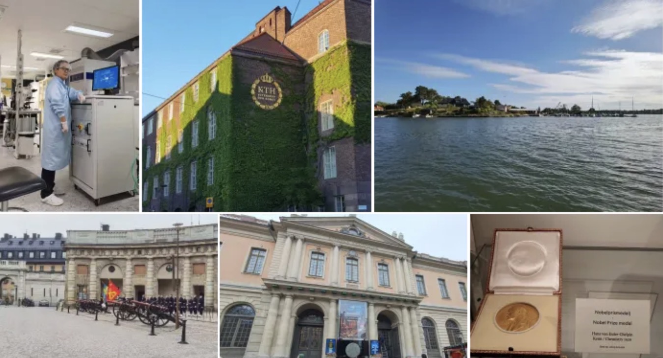 在瑞典皇家理工学院(KTH)微纳加工超净间工作,瑞典皇家理工学院校园、稀土元素发现地瑞典伊特比 (Ytterby),瑞典皇宫、诺贝尔奖博物馆和诺贝尔奖金牌