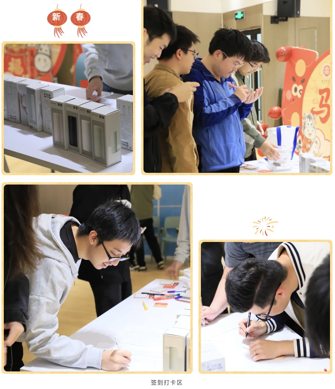 活动正式启动后,现场秩序井然、氛围融洽。研究生会的同学们提前规划场地,划分出签到打卡、祝福许愿、趣味互动、礼品兑换四大功能区域。同学们在老师与工作成员的有序引导下参与活动,签到完毕后领取了学院精心筹备的保温杯,一份份暖心好礼,切实传递出学院对同学们的深切关怀与美好期许。