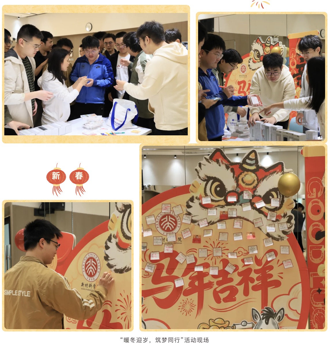 现场设置的“暖冬祝福墙”,成为同学们传递心声、凝聚情感的亮点。彩色便笺纸上,密密麻麻写满了大家对新年的憧憬、科研的期盼与同窗的情谊,“马年大吉”、“科研顺利”、“祝学院越来越好”等真挚寄语,字里行间流露着浓浓的温情与归属感。